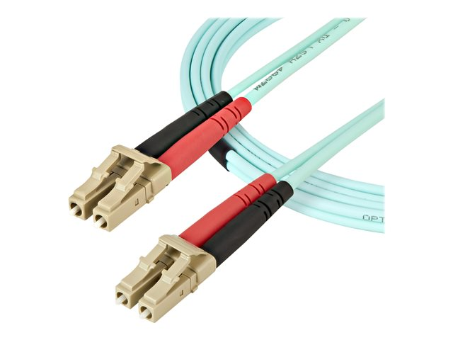 StarTech.com Aqua OM4 Duplex Multimode Fiber - 2m / 6 ft - 100 Gb - 50/125 - OM4 Fiber - LC to LC Fiber Patch Cable (450FBLCLC2) - Nettverkskabel - LC multimodus (hann) til LC multimodus (hann) - 2 m - 2 m - fiberoptisk - dupleks - 50 / 125 mikroner - OM4 - akvamarin 450FBLCLC2