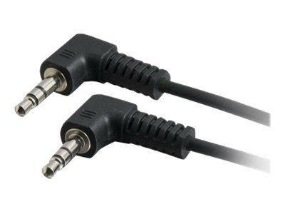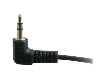 The C2G "Value Series" stereo right angle audio cable is specifically designed to provide a brilliant audio experience. It connects a PC sound card, portable CD player or any mini-stereo audio device to a multimedia speaker. This cable features two copper conductors and a drain wire. The conductors and drain wire are wrapped with an aluminum Mylar shield which prevents unwanted EMI/RFI interference. Fully molded nickel-plated connectors provide excellent strain relief for durable use.