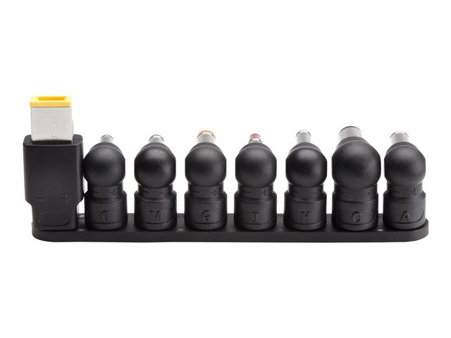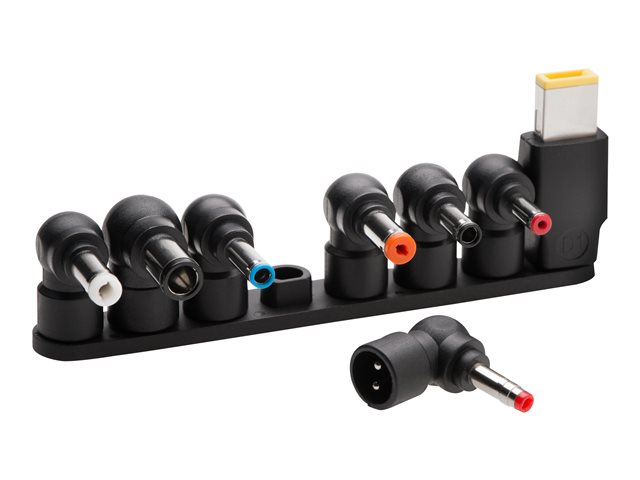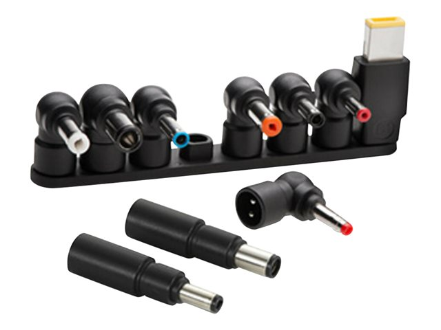 • 8 power tip adapters can be dongle-connected for quick access and provide connectivity options for Dell, HP, Lenovo and other leading manufacturers (retention rings included)