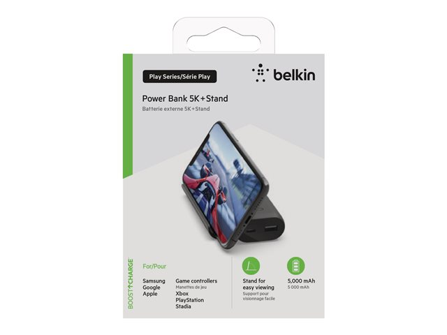 The Belkin BoostCharge Play Series power bank is a versatile and powerful charging solution designed for the modern mobile user. With a 5000 mAh capacity, it provides ample power to keep your devices charged throughout the day. Its unique built-in stand feature allows for hands-free viewing, making it perfect for watching videos or conducting video calls without interrupting the charging process. The power bank comes equipped with a USB-C to USB-A cable, ensuring compatibility with a wide range of devices, including cellular phones and tablets. Additionally, the LED indicator helps you easily monitor your device's charging status, while the equipment protection value of 2500 US Dollars offers peace of mind by safeguarding your devices against potential damage. Whether you're at home, in the office, or on the go, the Belkin BoostCharge Play Series power bank is your reliable partner for staying connected and powered up.
