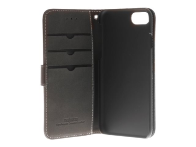 Insmat Exclusive Flip Case - Lommebok for mobiltelefon - ekte skinn - svart - for Apple iPhone 6, 6s, 8, SE (2nd generation)