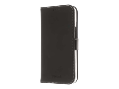 Insmat Exclusive - Lommebok for mobiltelefon - ekte skinn, termoplast-polyuretan (TPU), kartong+papir+aluminiumsfolie, bomullssting - svart - for Apple iPhone 13 650-3001
