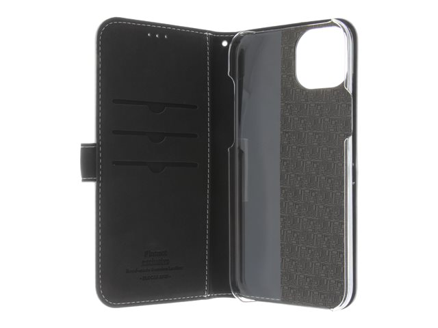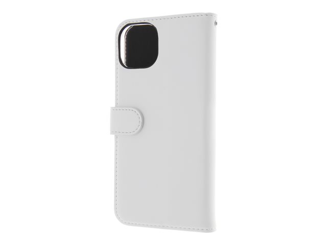 Insmat Exclusive - Lommebok for mobiltelefon - ekte skinn, polykarbonat, kartong+papir+aluminiumsfolie, bomullssting - hvit - for Apple iPhone 15 Plus 650-3189