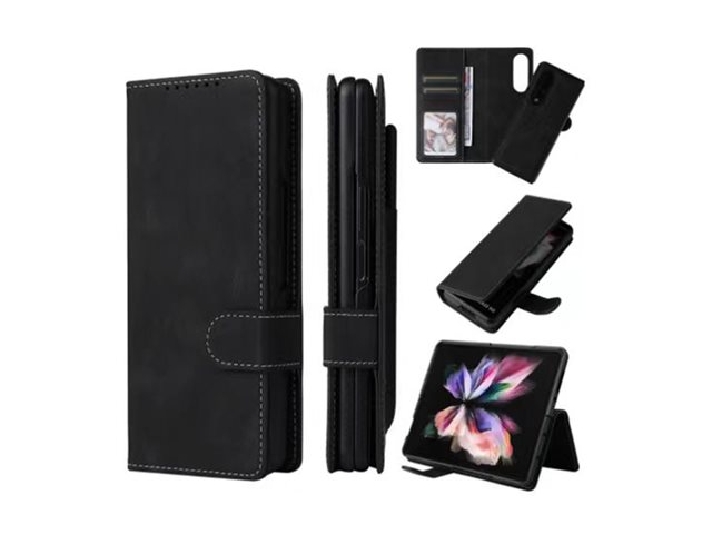 Insmat Exclusive - Lommebok for mobiltelefon - magnetisk - polyuretanlær, kartong+papir, termoplast-polyuretan (TPU), bomullssting - svart - for Samsung Galaxy Z Fold6 650-3277