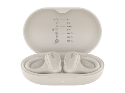 Belkin SoundForm ClearFit - True wireless-hodetelefoner med mikrofon - åpent øre - over-øret-montering - Bluetooth - sand