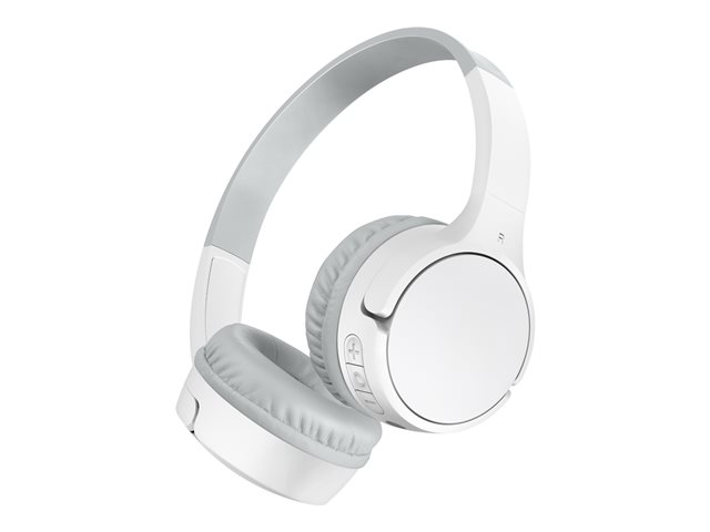 The Belkin SoundForm Mini headphones are the perfect audio companion for the young and active. With a design that's both accident-proof and spill-resistant, they're built to handle everything kids can throw at them. The headphones feature an adjustable headband and on-ear design, ensuring a comfortable fit for all-day wear. Sound quality is maintained, with stereo sound output and a max sound pressure of 85 dB to keep listening safe. They offer the flexibility of wired and wireless connectivity, thanks to the 3.5 mm jack and Bluetooth technology, making them compatible with a wide range of devices. The built-in microphone and quick charge feature add convenience, allowing for interactive play and minimal downtime. Whether for education or entertainment, the Belkin SoundForm Mini headphones are designed to keep up with the dynamic world of kids.
