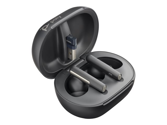HP Poly Voyager Free 60+ UC - True wireless-hodetelefoner med mikrofon - i øret - aktiv støydemping - USB-A via Bluetooth-adapter - karbon sort - Zoom Certified