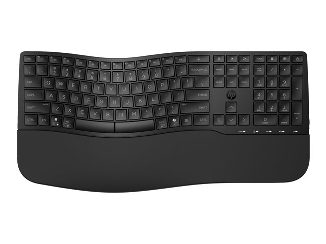 HP 685 - Tastatur - dual modus, 3-sone layout, flere enheter, 23 programmerbare taster, OS automatisk deteksjon, lav profil tastereeise - 100% - full size - trådløs - 2.4 GHz - Pan Nordic - svart 8T6L9UT#UUW