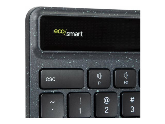 The Targus Sustainable Energy Harvesting EcoSmart French-language keyboard combines Bluetooth and advanced solar technologies with post-consumer recycled materials in an ecofriendly, full-size keyboard. Manufactured from up to 85% recycled material and infused with antimicrobial protection, this keyboard helps to prevent the growth of micro-organisms, while helping to protect the environment - even its packaging is recycled. It's primarily powered by solar cells optimized to harvest light from a variety of light conditions (including indoor artificial lighting) and connects to up to 3 devices using Bluetooth SoC, which means its extremely low-power capabilities makes it 3 to 4 times more power-efficient than other Bluetooth keyboards. And, this keyboard features Targus DefenseGuard antimicrobial protection. Unlike topically applied sprays, this DefenseGuard keyboard is infused with antimicrobial additives that don't wear or wash off, and works continuously for the life of the product.