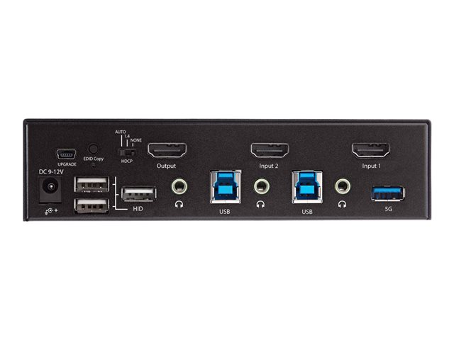 StarTech.com 2 Port HDMI KVM Switch, Single Monitor 4K 60Hz Ultra HD HDR, Desktop HDMI 2.0 KVM Switch with 2 Port USB 3.0 Hub (5Gbps) & 4x USB 2.0 HID Ports, Audio, Hotkey Switching, TAA - KVM with Fast Switching - KVM / lydsvitsj - 2 x KVM/lyd - 1 lokalbruker - stasjonær, rackmonterbar - TAA-samsvar