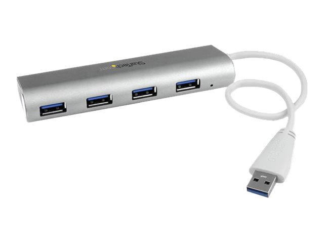 StarTech.com 4 Port Portable USB 3.0 Hub with Built-in Cable - Aluminum and Compact USB Hub (ST43004UA) - Hub - 4 x SuperSpeed USB 3.0 ST43004UA