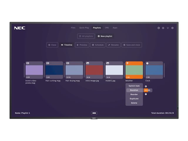 • Everything under control - one single interface is needed to manage both the NEC MediaPlayer and the display directly, via a web-interface or the NEC Display remote control