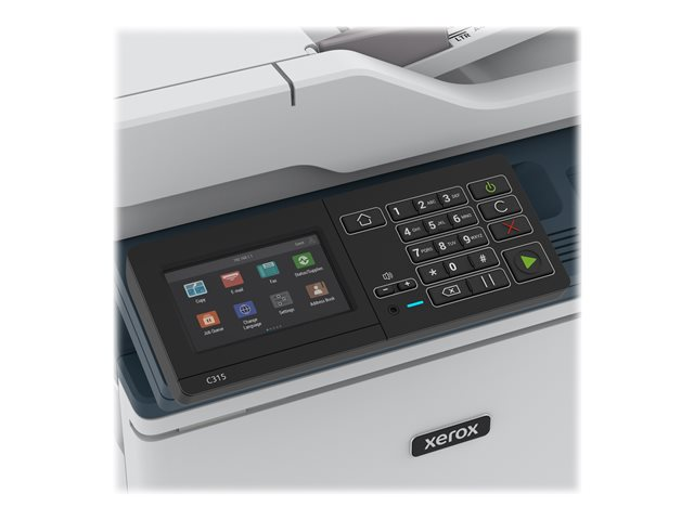 Den rimelige Xerox C315 fargeskriveren er bygget for raske, smidige kontorer og hjemmekontorer som trenger en fargeskriver som kan holde tritt med dem. Enkel å installere med Xerox Smart Start-programvare og klar til å jobbe hardt med en gang. Denne enheten er designet for miljøer med høye utskriftsbehov, med 2,4-tommers brukergrensesnitt i fargeberøringsskjerm, 50-arks automatisk dokumentmater, automatisk 2-sidig utskrift på papir i brev- og legal størrelse med standard papirkapasitet på 250 ark. Innebygd trådløs og Wi-Fi Direct-funksjonalitet lar deg skrive ut direkte fra mobile enheter og nettbrett. Designet med et anbefalt månedlig utskriftsvolum på opptil 1500sider, en 1,2 GHz dual core-prosessor, 2GB minne og utskriftshastigheter på opptil 35brev-sider per minutt/33 A4-sider per minutt, er C315 en arbeidshest. Gjør mer med Xerox Workflow Central (tilleggsutstyr). Den lar deg konvertere dokumenter til andre språk, endre håndskrevne meldinger til delbare tekstdokumenter, lage lydfiler av papirkopier som du kan lytte til mens du er på farten, samt redigere innhold automatisk og konvertere skanninger til Microsoft Office-applikasjoner. EPEAT-sertifisering betyr at C315 imøtekommer omfattende kriterier for design, produksjon, energiforbruk og resirkulering. Og programmet Green World Alliance tilbyr problemfri resirkulering av blekk-patroner.