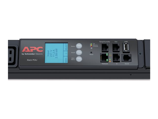 APC Metered Rack PDU - Strømfordelerenhet (kan monteres i rack) - AC 400 V - 3-faset - Ethernet, RS-232, USB - inngang: IEC 60309 32A - utgangskontakter: 42 - 0U - svart - for P/N: SMX1500RM2UCNC, SMX2KR2UX145, SMX3KR2UNCX145, SMX750C, SMX750CNC, SMX750CUS AP8886