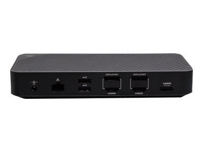 The USB-C Hybrid Triple 4K Display Docking Station with DisplayLink and DP Alt Mode transforms USB-C enabled laptops into total desktop solutions through a single USB-C connection - allowing them to have more video outputs, more connected peripherals, and quick data transfers, all while keeping the laptop charged and ready to go.