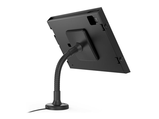 The Compulocks Apex Flex mounting kit is a solution for securing tablets on countertops, offering both protection and functionality. Its metal construction and key lock system ensure your device stays where it's supposed to, safe from theft or tampering. The integrated cable management keeps the setup neat and organized, while the tilt adjustments allow for easy customization of viewing angles, ensuring a comfortable and interactive user experience. Furthermore, the design accommodates exposed front/back cameras and sensors, ensuring that your tablet's features are fully usable. Whether for retail, hospitality, or educational purposes, the Apex Flex is designed to meet the demands of any interactive display setup.