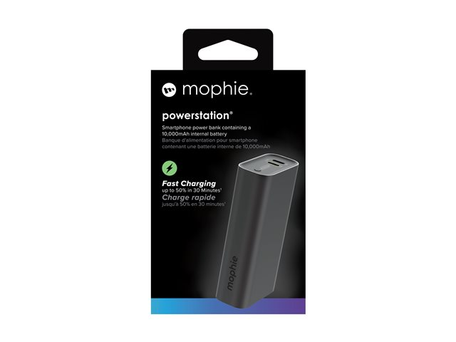 mophie powerstation - Strømbank - 10000 mAh - 30 watt - PD - 2 utgangskontakter (24 pin USB-C) - svart 401114330