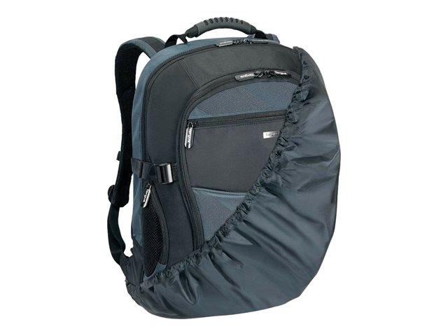 Targus XL Laptop Backpack is perfect for the notebook user that has a lot going on and going along. It starts with a large separate, padded notebook compartment that fits most notebooks with 17" - 18" widescreens. This backpack includes a compartment for files and many other additional storage areas. Integrated in a front workstation are Smart Phone pocket and business card holder. Featuring an integrated water repelling protective rain coat that you can hide away in a secret pocket it ensures your notebook is protected even in the wet. Its molded handle, waist strap, extra back cushioning and sturdy nickel fittings will provide the maximum protection whilst carrying your large screen notebook ensuring you arrive at your destination in comfort.