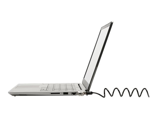 Ideal for thin laptops, the Slim Portable Combination Lock for Standard Slot allows the laptop to lie flat and stable without blocking valuable ports. Self-coiling carbon steel cable sheathed in plastic stretches up to 1.8m and shrinks down to 76mm for easy portability. Features include a resettable four-number combination, one-handed operation and Register & Retrieve for quick, secure and easy combination retrieval. Meets or exceeds rigorous strength testing standards.