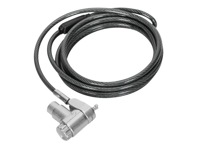 The Targus DEFCON security cable lock offers a solution to protect your technology investments. Designed with versatility and durability in mind, it features a galvanized steel cable, a 360° rotating head for easy application, and a universal keyed lock adaptable to a wide range of devices. Whether you're securing desktops, docking stations, monitors, or notebooks, the DEFCON cable lock provides peace of mind with its master keyed system. Its inclusion of T-Bar, nano, and wedge lock types ensures a secure fit for various devices, making it an essential accessory for safeguarding your valuable technology.